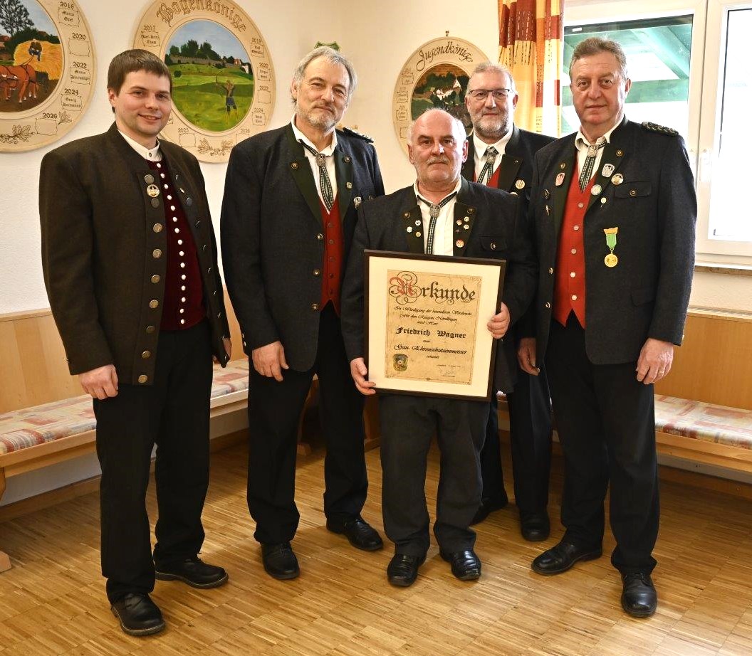 v.L.: Christian Tillmann (Vizepräsident Bezirk Schwaben), Richard Pfaller (1. Gauschützenmeister), Karl-Heinz Gruber (Germania Balgheim), Ralf Kahn (stellv. Gauschützenmeister),